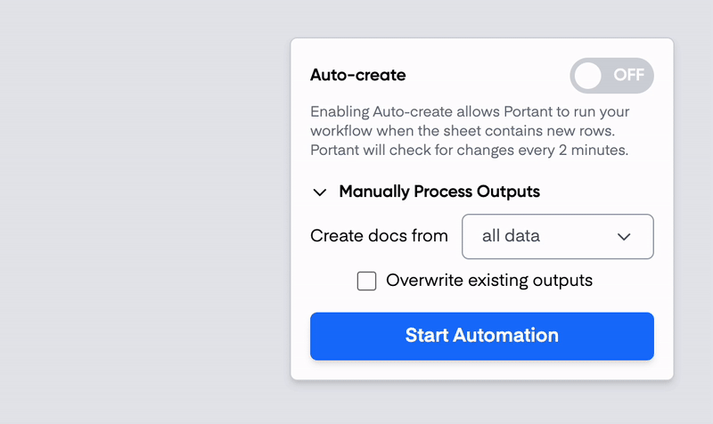 Click 'Start Automation' and Portant will take information from your sheet and process invoices created from your Google Docs invoice template. The invoices will be emailed to your customers and also stored in a folder in your Google Drive.