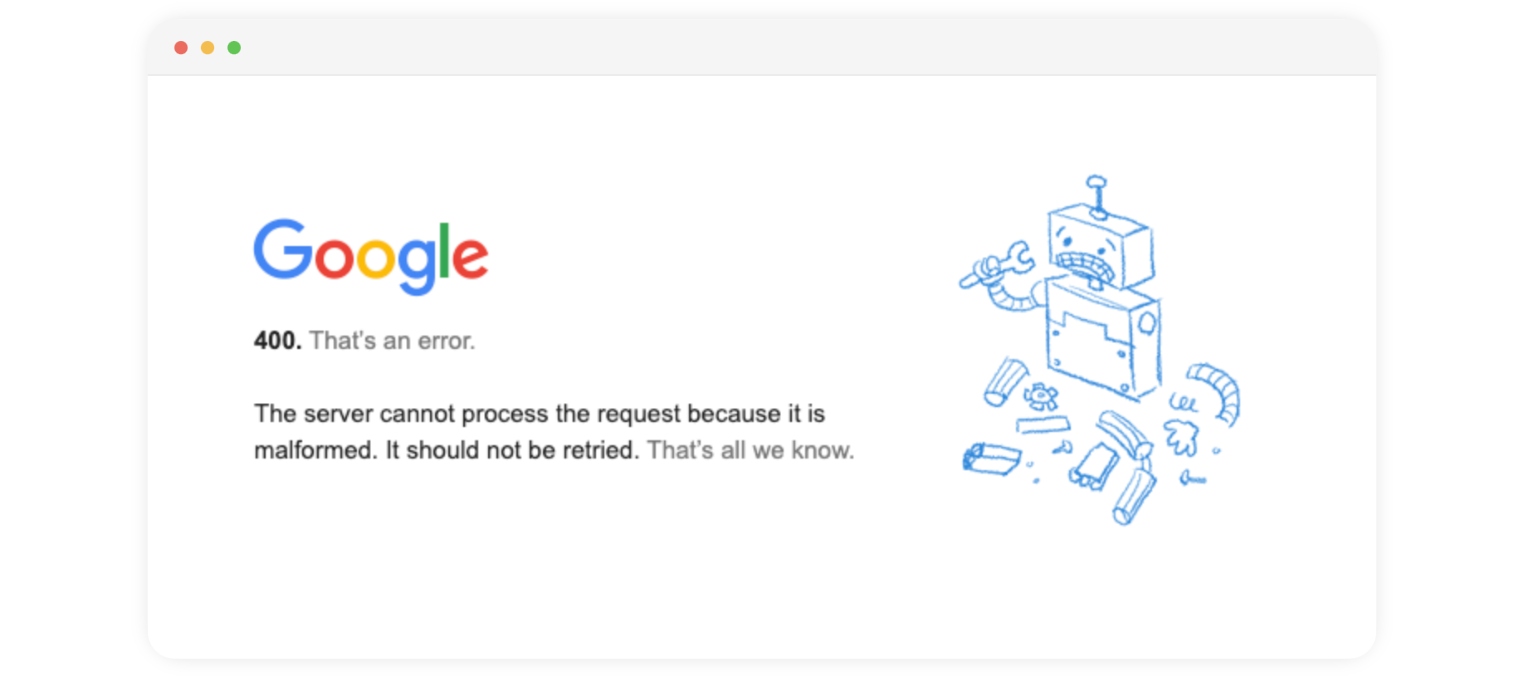 Here is an example of the message that you might see if you experience the 400 Error