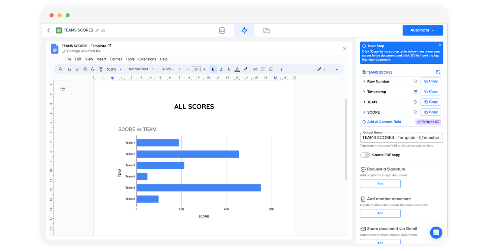 In this article, we will jump straight to adding a Google Sheets chart to a Google Docs and a Google Slides template. However, if this is your first time creating a workflow, please refer to this article to learn more.