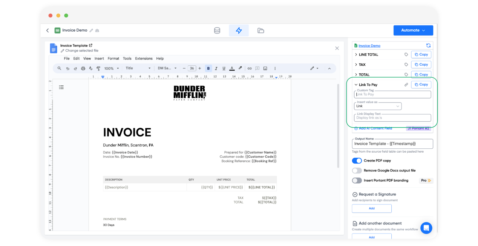 Did you know that you can add hyperlinks into your templates? This is particularly beneficial when you want users to effortlessly access specific information or take actions, such as providing a direct link to pay an invoice. ๐ ๐