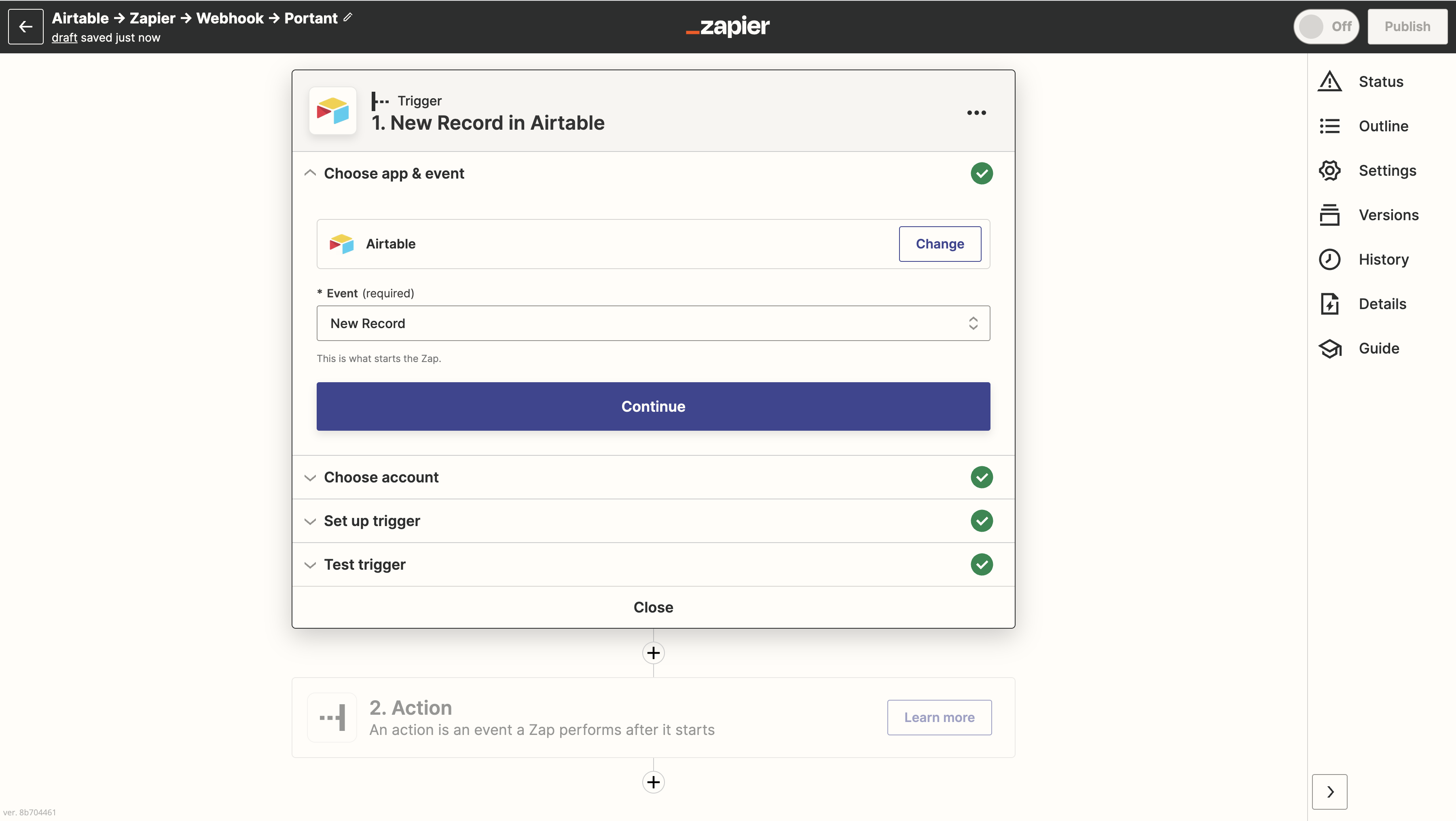 Then go back to Zapier and 'Publish & Turn on' your Zap