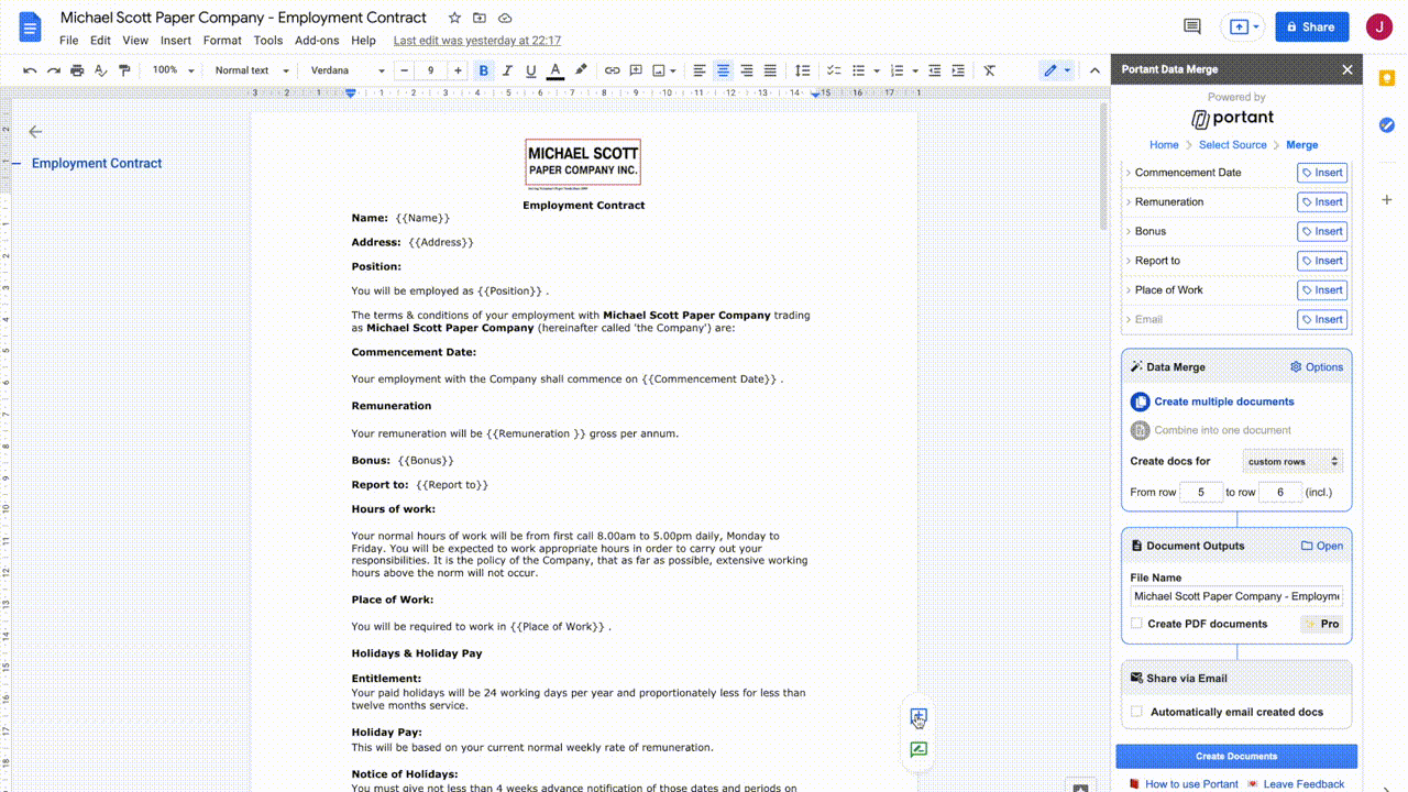 Sometimes it might be useful to automatically share documents with a certain people via email as soon as the document is created. With Portant Data Merge you are able to do this using our 'Share via email' functionality.
