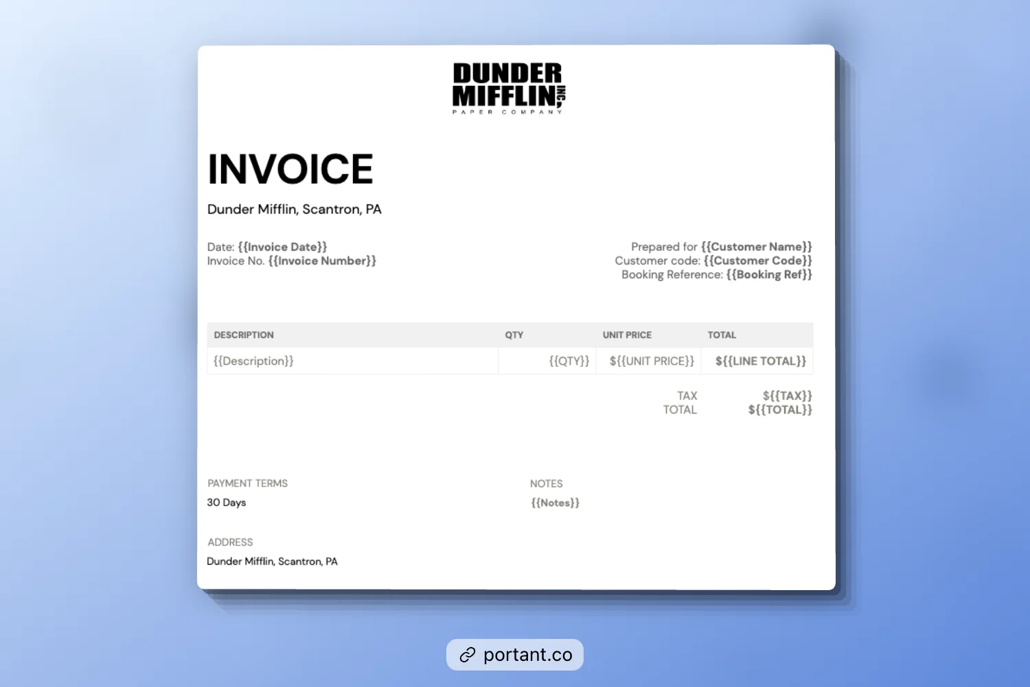 Clearly Define Payment Terms: Ensure your payment terms are clearly stated on the invoice. This includes the due date, accepted payment methods, and any late payment penalties. Portant’s invoice template already contains all of these elements.